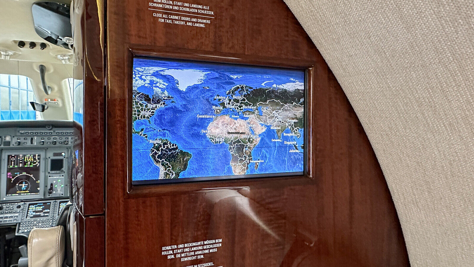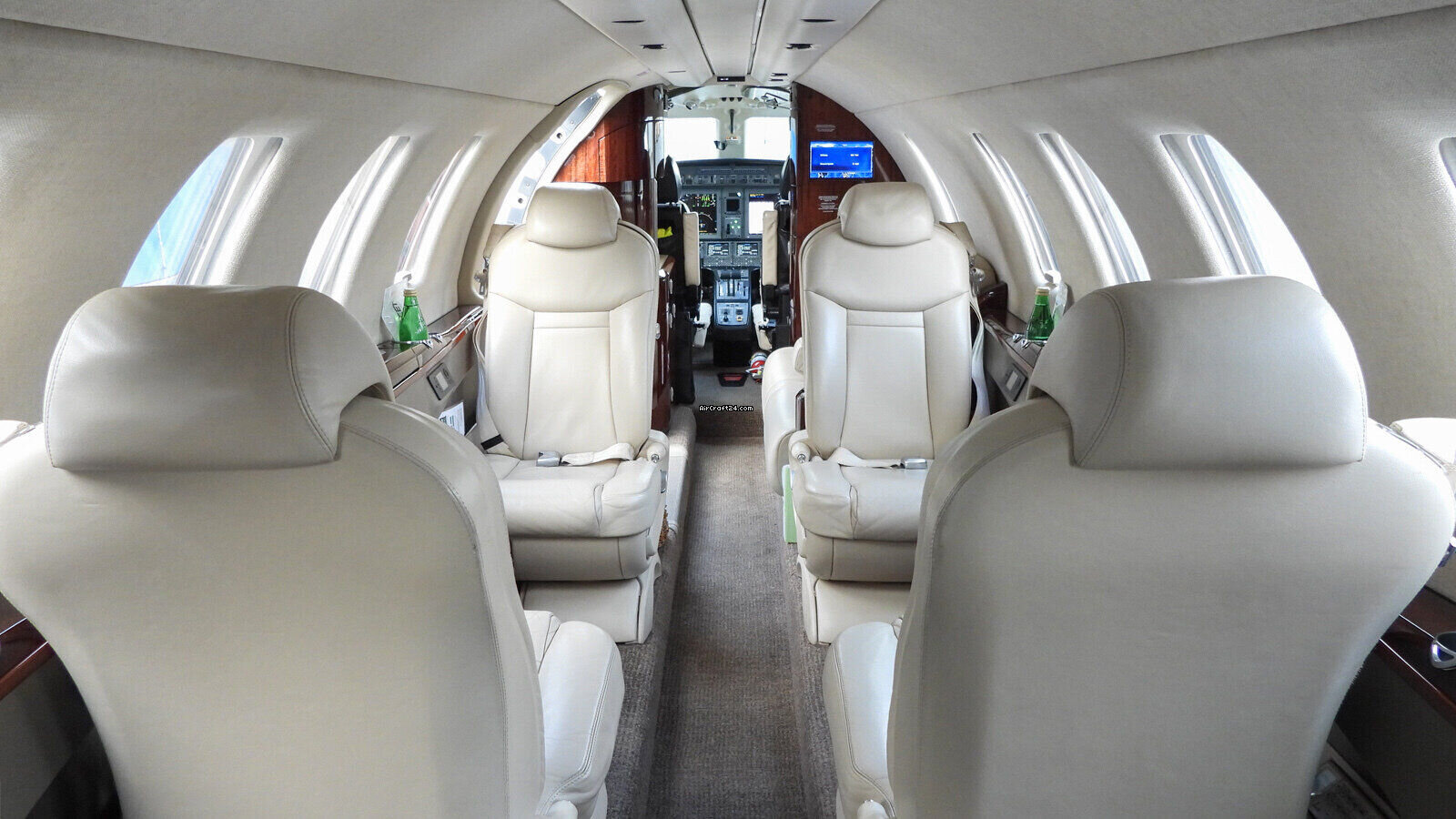 | Interior | | 2 Crew-, 4 Club Seats; 2 single fwd. Seats, double seat Divan (Couch) and belted Toilet Seat (max. 9 Pax), AC Power Outlets, Lavatory with sliding door for privacy, 2 additional foldable Pax Tables on seat 7 & 8, Satcom Telephone, GoGo Advance L3 Wi-Fi, Airshow with Media Center and 2 additional Screens. |